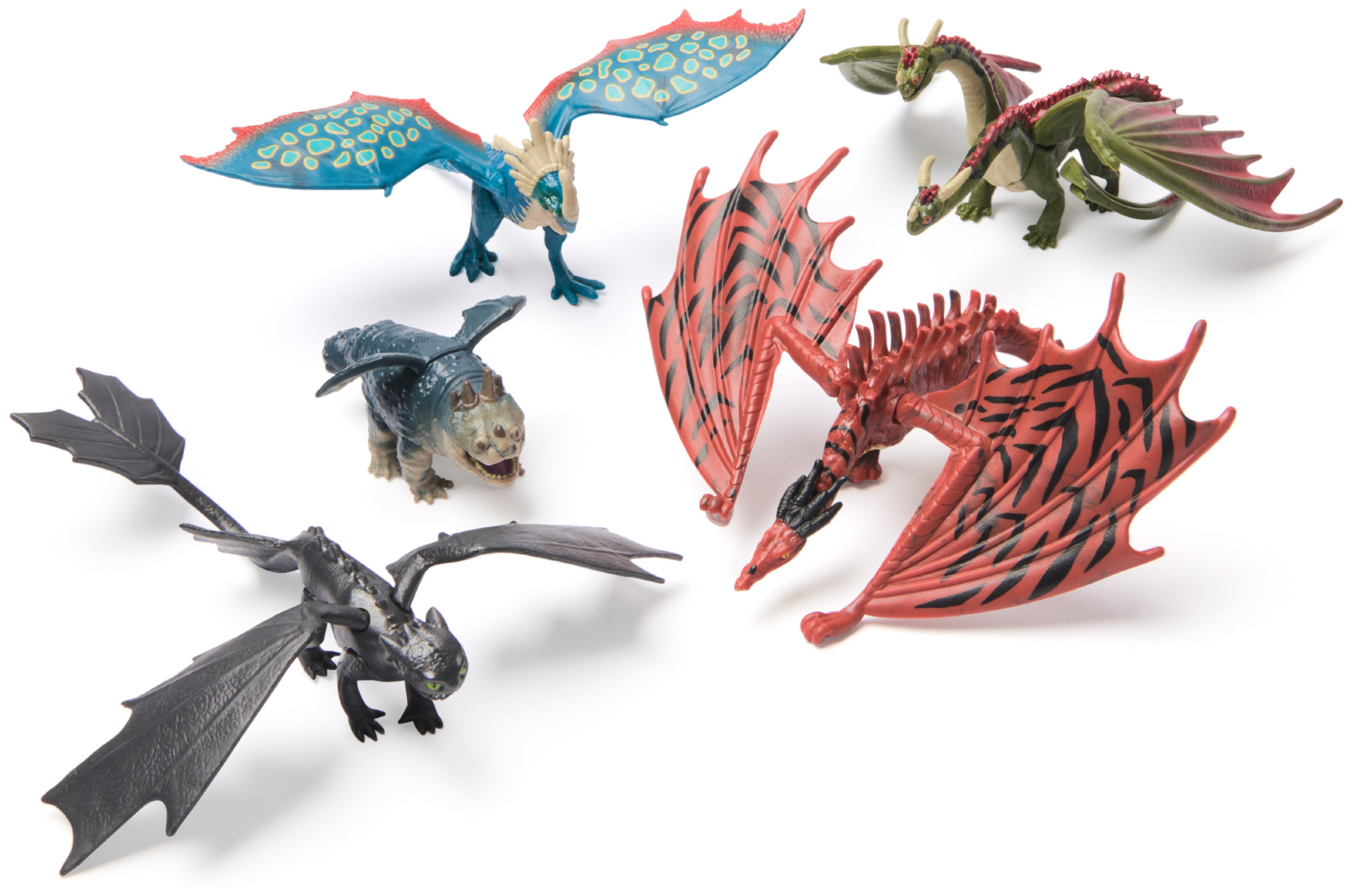 Sammle alle deine Lieblingsdrachen: Night Fury (Ohnezahn), Gronkle, Deadly Nadder (Sharp-tailed), Hideous Zippleback und Monstrous Nightmare - jede Figur ist 5 cm groß und detailgetreu aus dem Kinofilm. -