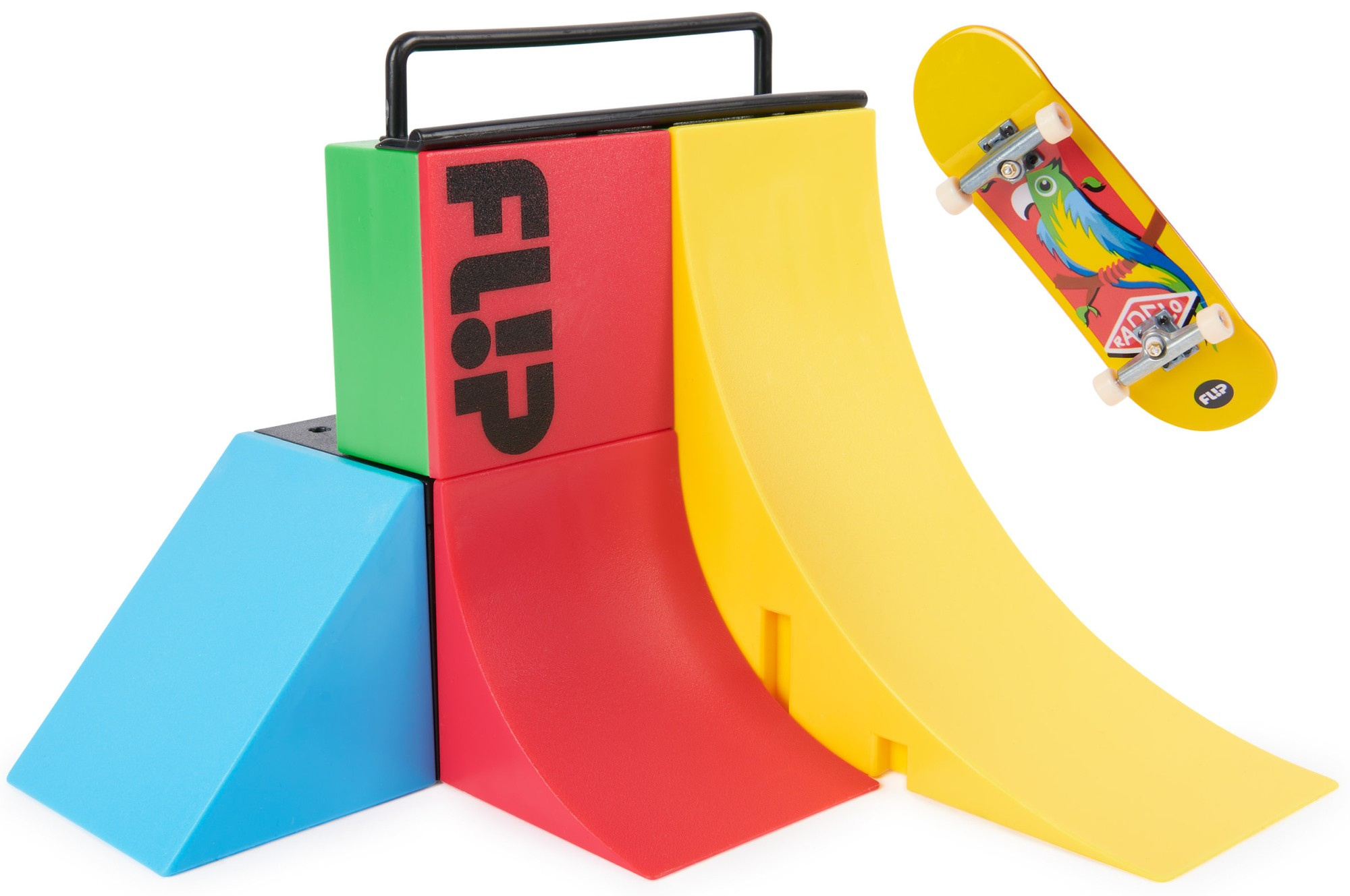 Das Set besteht aus einer hohen Rampe, auf der du deine Tricks perfektionieren kannst. Das mitgelieferte Skateboard sorgt für jede Menge Spaß.