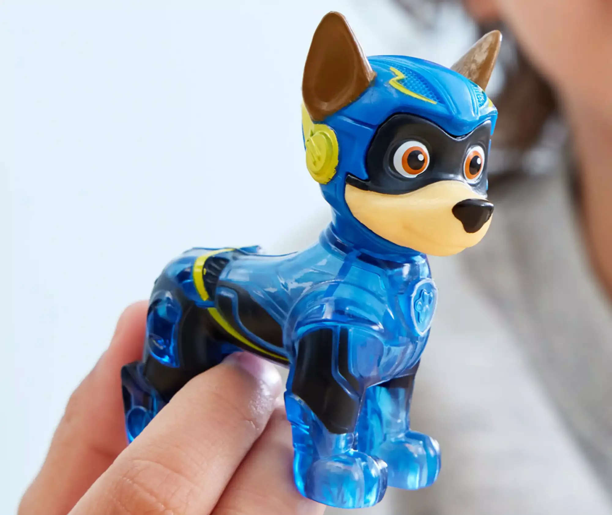 - Chase ist ein Deutscher Schäferhund und spielt in der Serie die Rolle eines Polizeibeamten. Er ist in einem marineblauen Outfit mit gelben Elementen gekleidet. Die Figur hat einen beweglichen Kopf. Er ist ca. 7 cm groß, und das Set enthält neben dem Hund