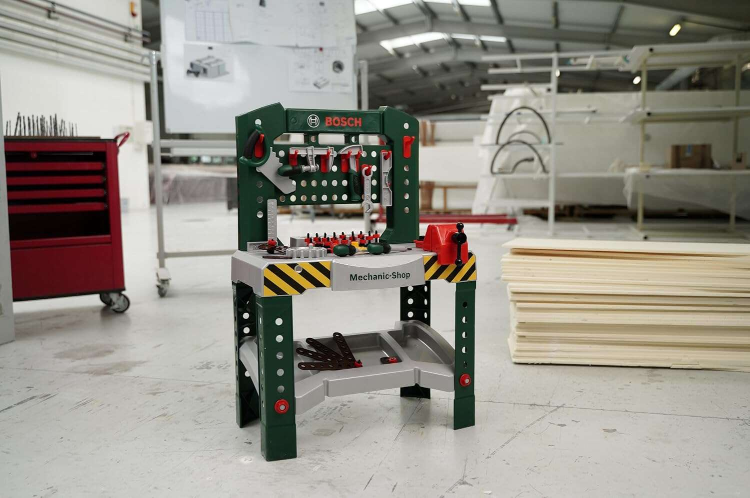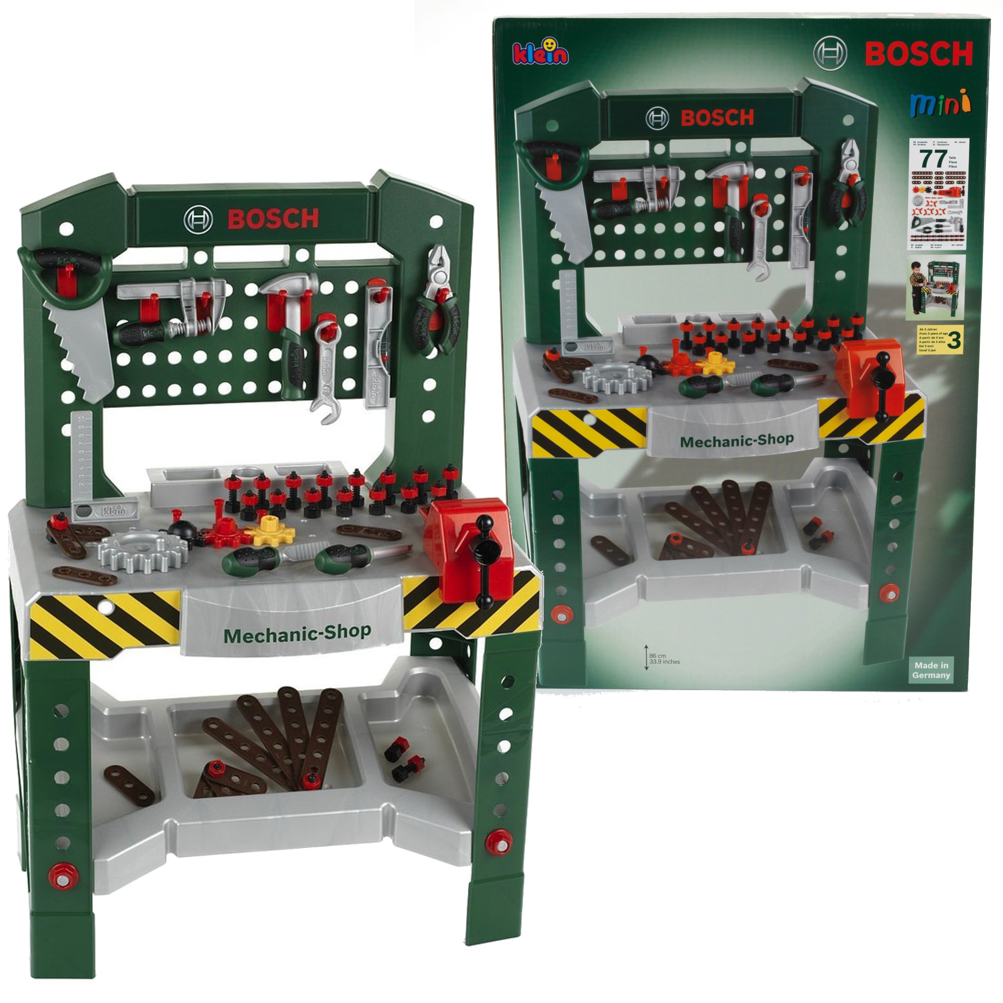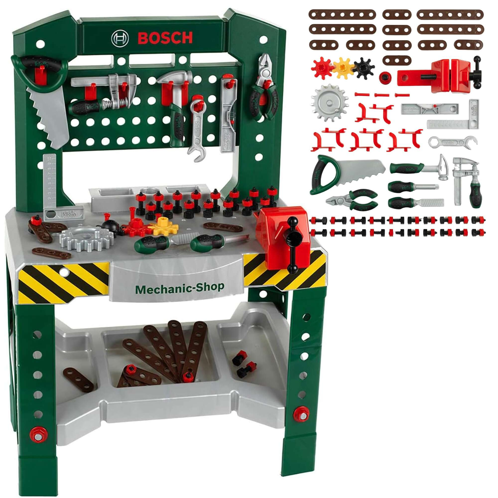 - Klein 8574 Bosch Werkstatt 77 Stück. Große Werkstatt mit Bosch-Werkzeugen ab 3 Jahren.